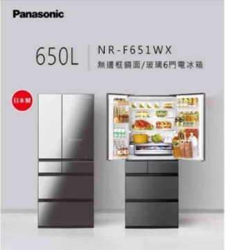 • 650公升 日本製六門無邊框玻璃變頻電冰箱