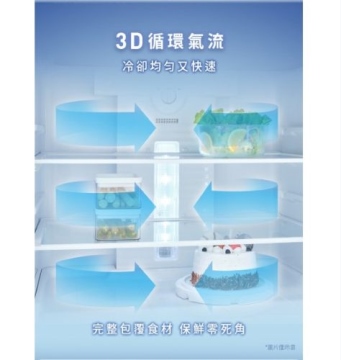 • 496公升無邊框鋼板三門變頻電冰箱