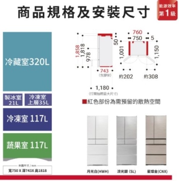 • 610公升 日本製變頻六門冰箱