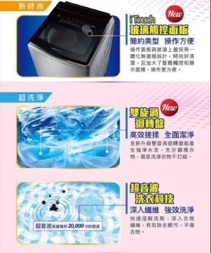 • 15kg DD直流變頻超音波洗衣機